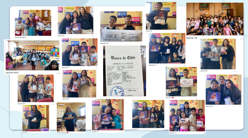 Nuestra escuela se suma, un año más, a la campaña solidaria de la Teletón, reafirmando su compromiso con la inclusión y la colaboración. A través de diversas actividades, estudiantes, docentes y familias trabajaron en conjunto para apoyar esta noble causa que une al país en torno a la solidaridad, reuniendo este año la suma de $ 1.296.330