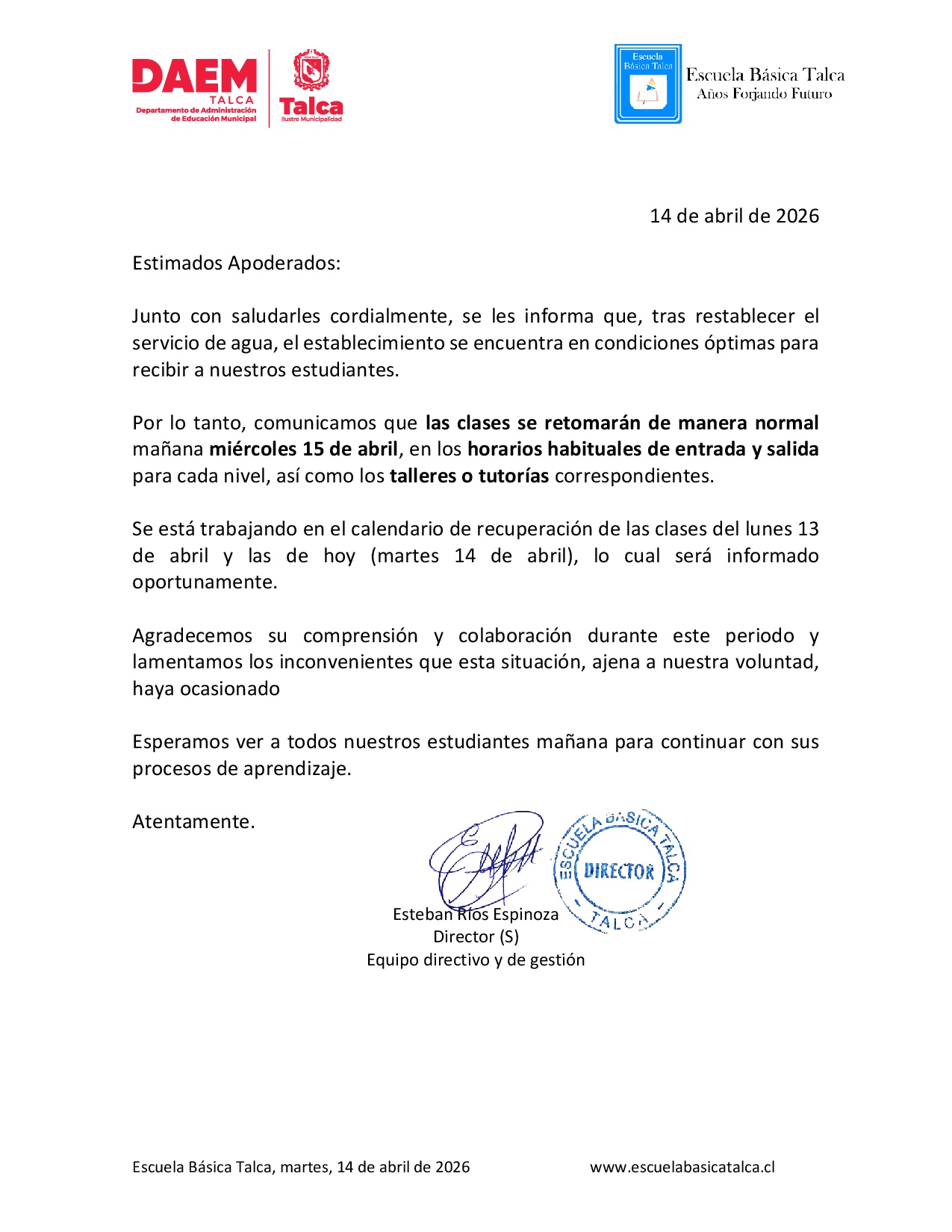 - Reglamento interno y de convivencia escolar